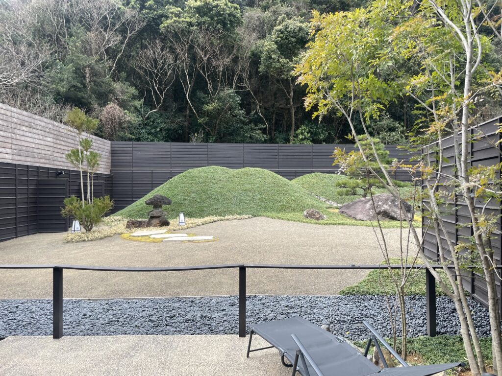 敷地内に入ると、石畳の小路や手入れされた庭園が広がっていて、訪れた瞬間から非日常の世界に引き込まれます。