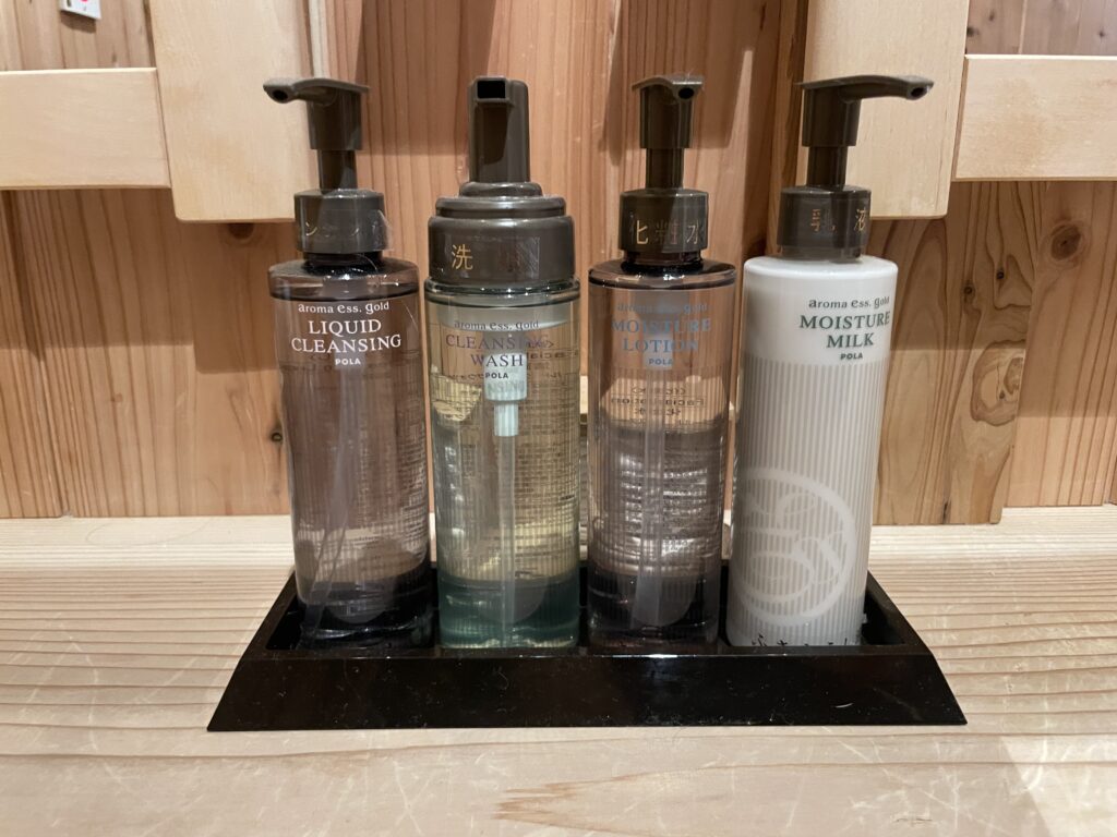 洗面台には、POLAのスキンケア一式が揃っています。